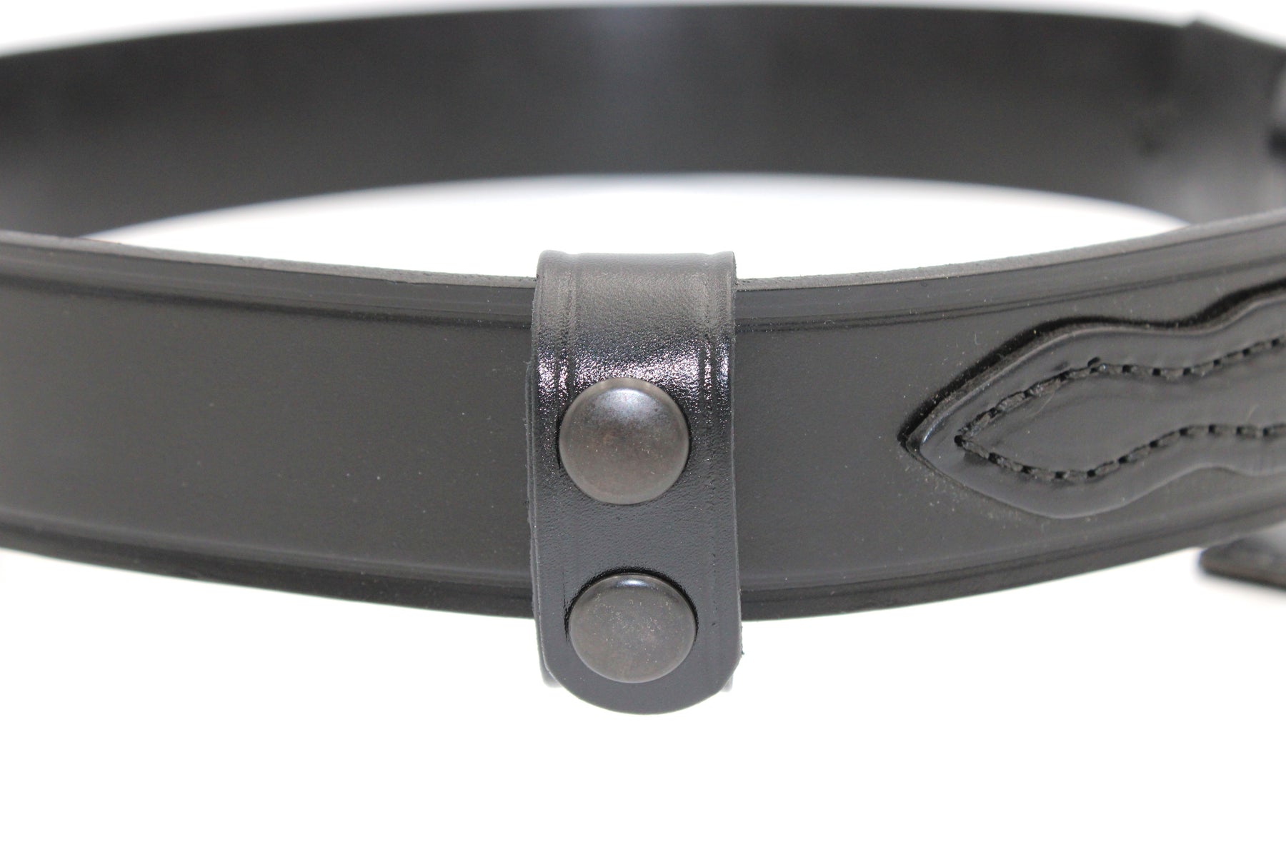 This black full-grain leather belt keeper is designed for durability and a refined finish. Featuring a secure black snap closure, it offers reliable fastening to keep your belt neatly in place. Crafted from premium leather, it combines strength with a sleek, professional look ideal for everyday use.