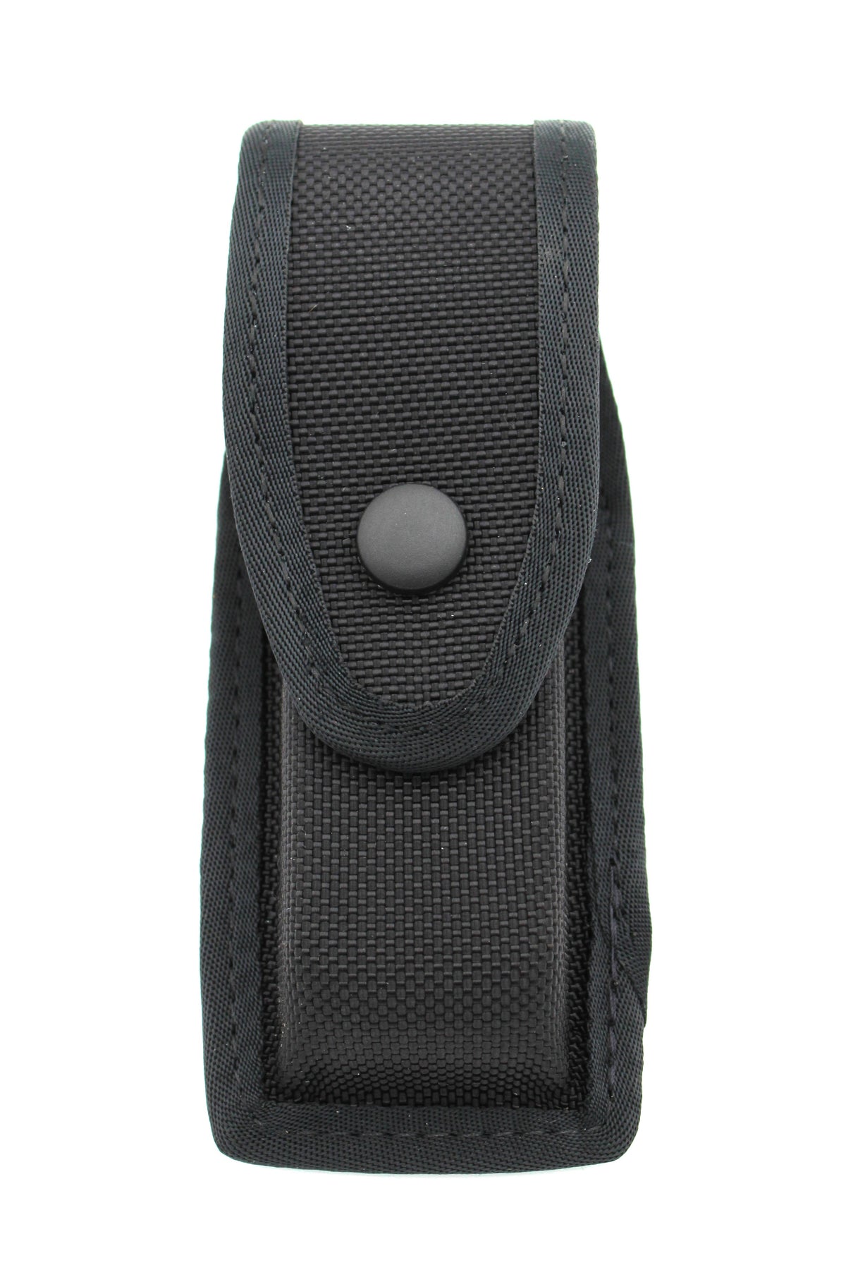 The #X628-3 - Phoenix (Nylon) Single Magazine Case is designed for vertical carry, making it easily accessible and secure. Its durable nylon construction ensures long-lasting use. Perfect for professionals, it allows for quick and effortless access to your magazines.